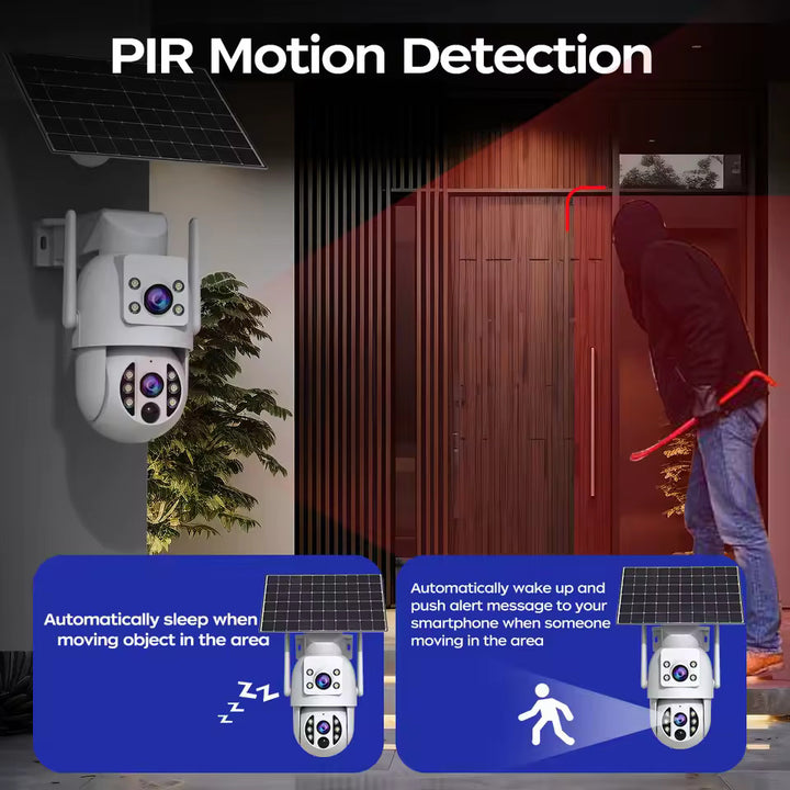 Advanced PIR Motion Detection – Instantly detects human movement and sends real-time alerts to your phone.