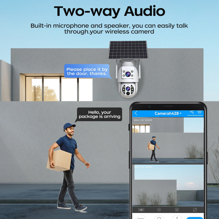 Two-Way Audio & Real-Time Communication – Hear and speak through the camera with built-in mic and speaker.