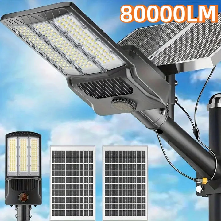 Solar Light with 2 Solar Panels – 80000LM Outdoor Street Light with Motion Sensor