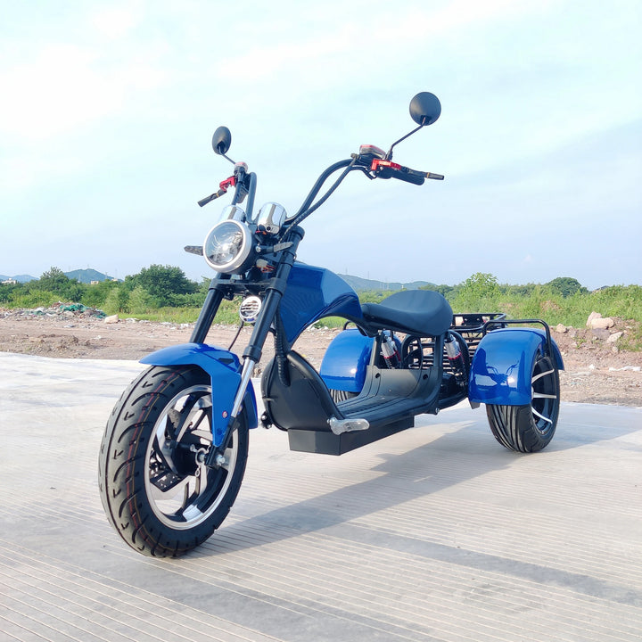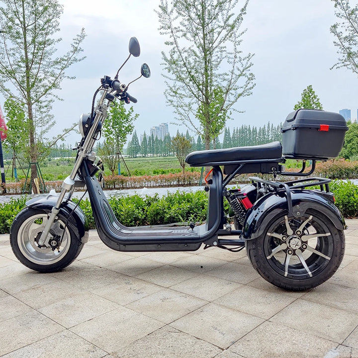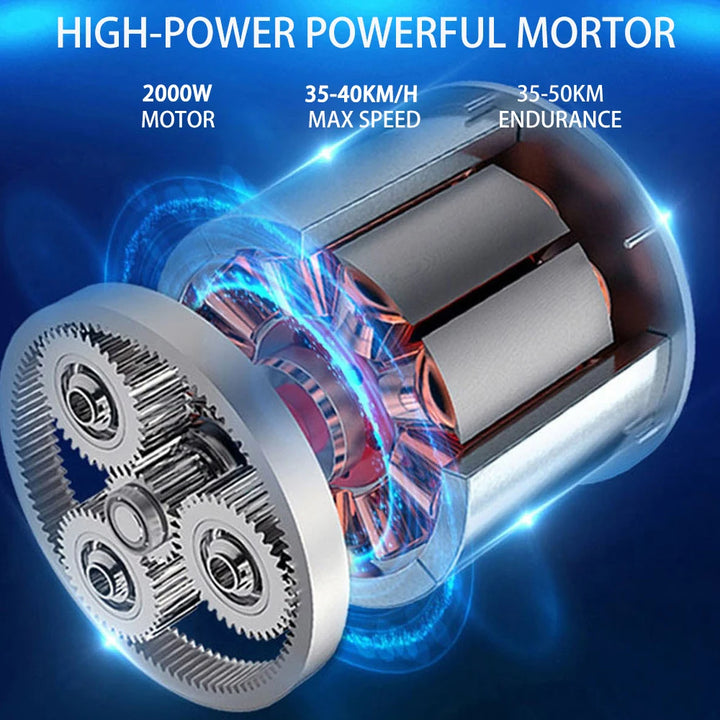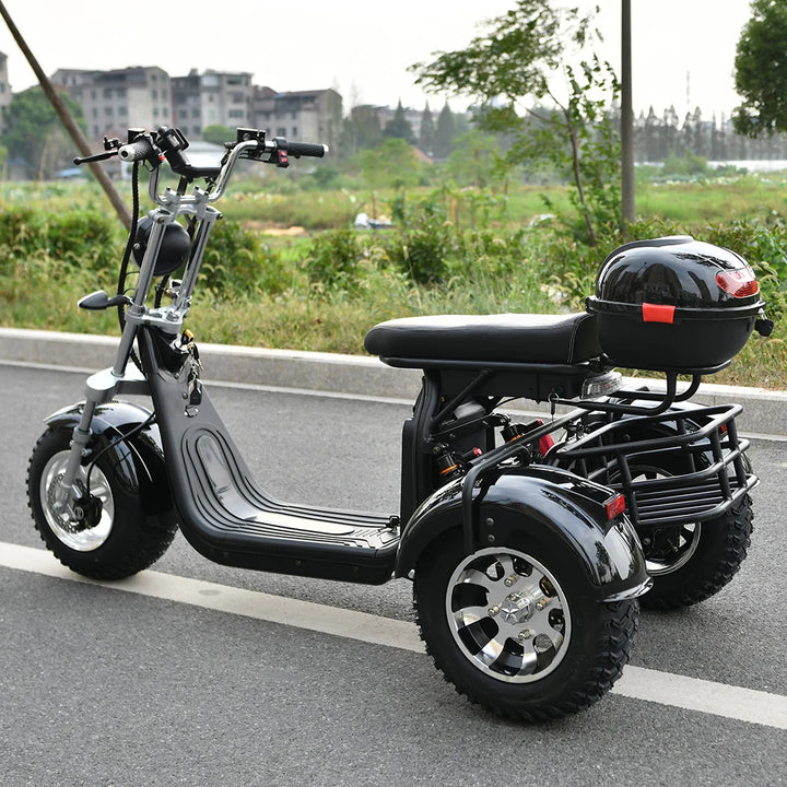 The eHoodax 05WQ Electric 3-Wheel Scooter combines power, durability, and comfort, making it the ultimate ride for off-road and urban adventures. Featuring a 2000W aluminum wheel motor and a 60V20AH lithium battery, this scooter reaches a maximum speed of 35-45 km/h and provides a 35-50 km range on a single charge, with a full recharge time of 8 hours.